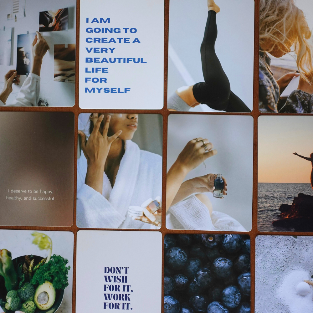 I’m so happy I decided to get this kit because it gives me so many different options to visualize my goals! The quality is amazing and the different pictures cover every category and goal that I want to set each week. I love that I get to arrange them how I want and that applying the pictures is so easy. Whether it’s full or not it looks good anywhere in my room!